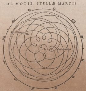 Dans Astronomia nova (1609), chapitre 1, Kepler trace la trajectoire géocentrique de Mars (vue depuis la Terre donc) sur plusieurs années, avec les boucles de rétrogradation et des repères zodiacaux :